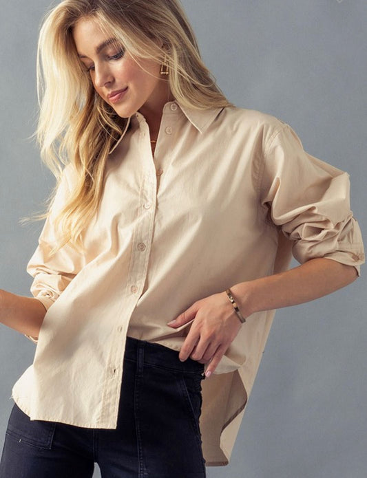 ONE AND ONLY BUTTON DOWN TOP | TAN