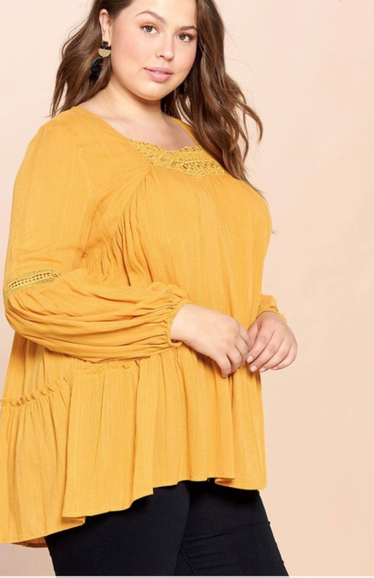 SUNNY EMBROIDERED TOP | MUSTARD | +PLUS