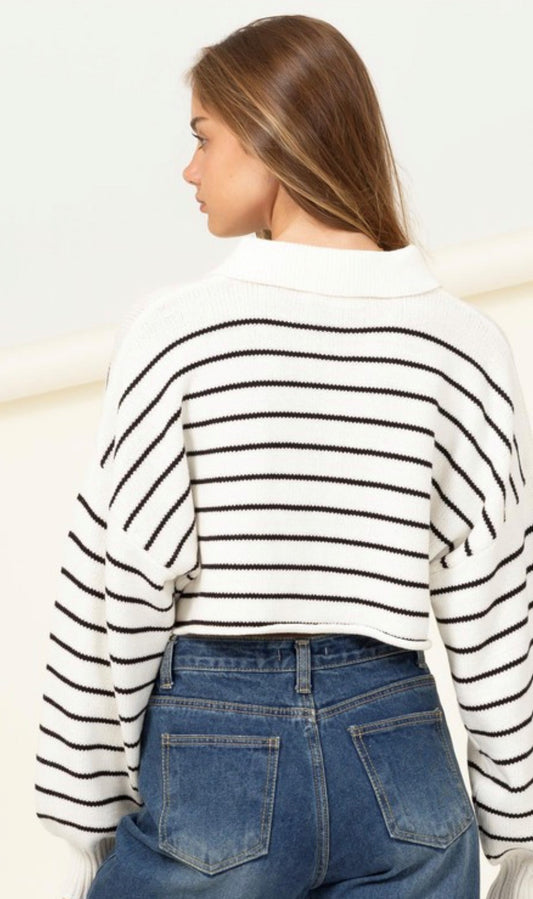 COLLEGIATE SWEATER TOP | BLACK & WHITE